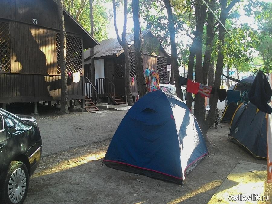 По сути это полноценная база отдыха с различными вариантами размещения. Туристы, предпочитающие отдыхать в палатках, с удовольствием выбирают палаточный город. Кроме удобных мест для установки собственных палаток путешественники получают возможность пользоваться всей инфраструктурой кемпинга. А именно: зонами для приготовления блюд на мангале, общей кухней, душем и туалетом. До Черноморского побережья несколько минут ходьбы. Пляж удобный, море чистое и теплое. Цены ниже средних, что особенно радует большинство путешественников.