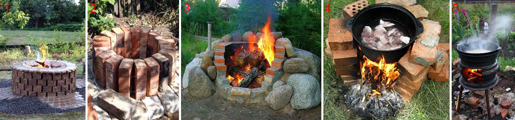 Кострища из кирпича делают нескольких видов: