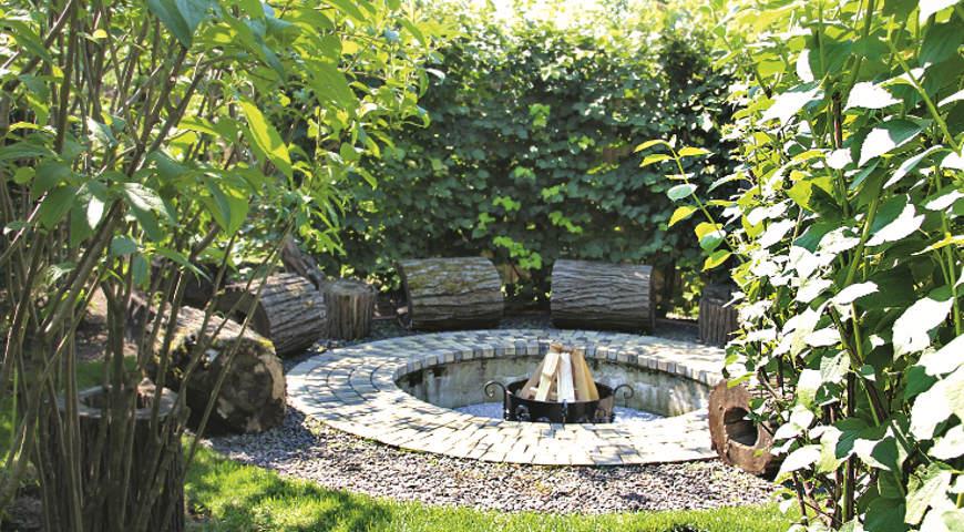 Вокруг очага дерн снимают, обеспечивая защитное пространство. Эту площадку можно выложить брусчаткой, засыпать мелким гравием или речными камнями.
