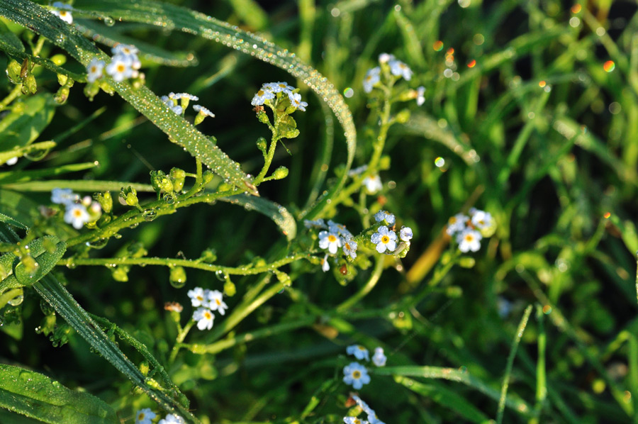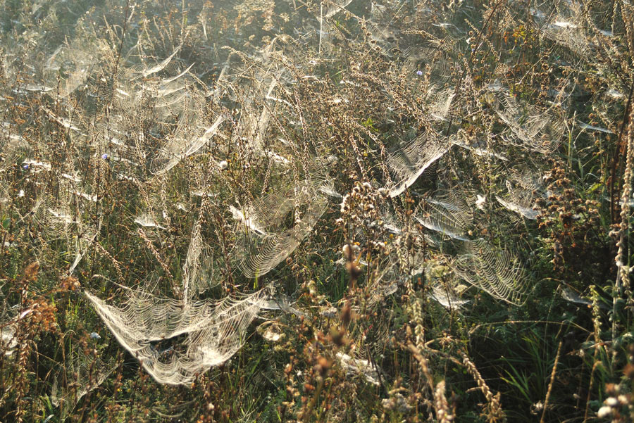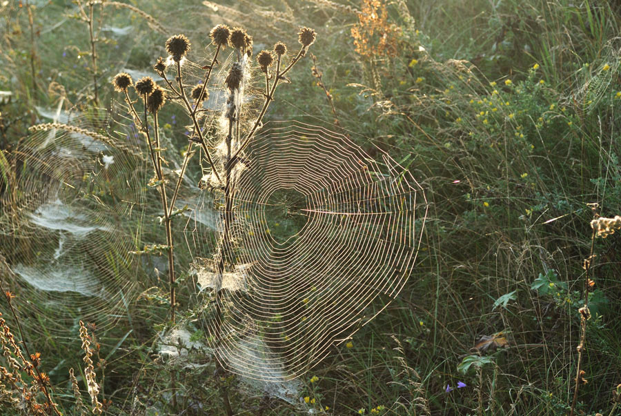 Утром, бывает, выдаются туманы, и тогда трава, паутина покрываются бисеринками росы и сверкают в солнечном свете!