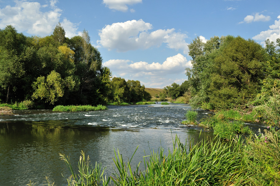 Самые красивые и нетронутые места на реке, пожалуй, в среднем течении, где она прихотливо извивается среди крутых холмов и склонов, поросших лесом