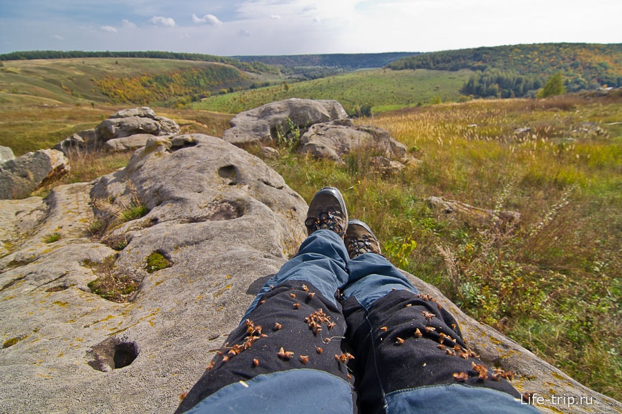 Очень приятное место и красивые пейзажи! Возможно сказывается моя любовь к горам, так как тут и холмы высокие и ‘скалы’ есть. Правда скалы очень маленькие, и на самом деле просто камни, но в таком количестве удивительно их видеть в нашей полосе. Мы, наверное, там около часа лазили, я ракурсы искал и наслаждался видами, Лешка купаться пошел, а потом ко мне присоединился. В камнях такие вымоины забавные, а в одном из них была большая полость, где шершни себе гнездо устроили.