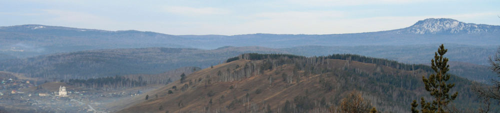 Александровская сопка — одна из вершин центрального хребта Урал-Тау. На фото справа. Слева деревня Сыростан.