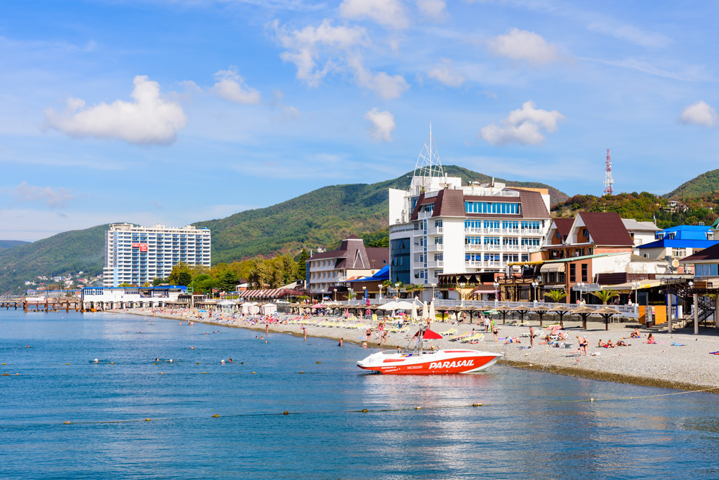 Этот курорт Краснодарского края объединяет в себе несочетаемое. Здесь можно нырнуть в глубины моря с аквалангом, позагорать на пляже, бороздить волны на сапбордах, водных лыжах, катере или заниматься кайтсерфингом, а после подняться на канатной дороге на заснеженные вершины горнолыжного курорта Красная Поляна.