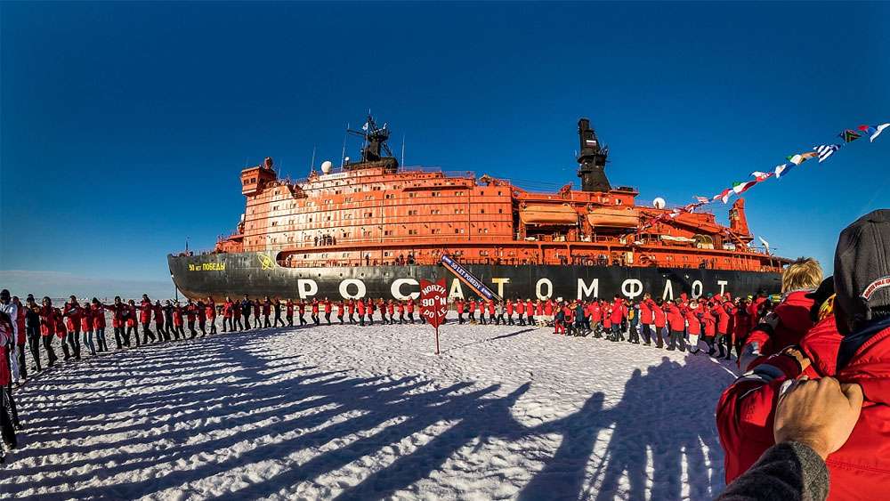 “50 лет Победы” с пассажирами на борту устремляется в сторону Арктики. Они увидят, как гигантский корабль играючи разламывает бескрайние льды толщиной более трех метров. Чтобы гости региона могли познакомиться с крайним севером и потрогать его своими руками, еще до прибытия на полюс они смогут сходить на льдины и отправляться на экскурсии. День и время для таких мероприятий не может быть строго прописан в программе, так как организаторы отталкиваются от погодных условий. В любом случае туристы увидят моржей, белых медведей и полярных птиц, смогут совершить вылет на вертолете и сделать самые фантастические фотки за свою жизнь. Наслаждаясь арктической природой, с каждым днем туристы понимают, что полюс становится все ближе.