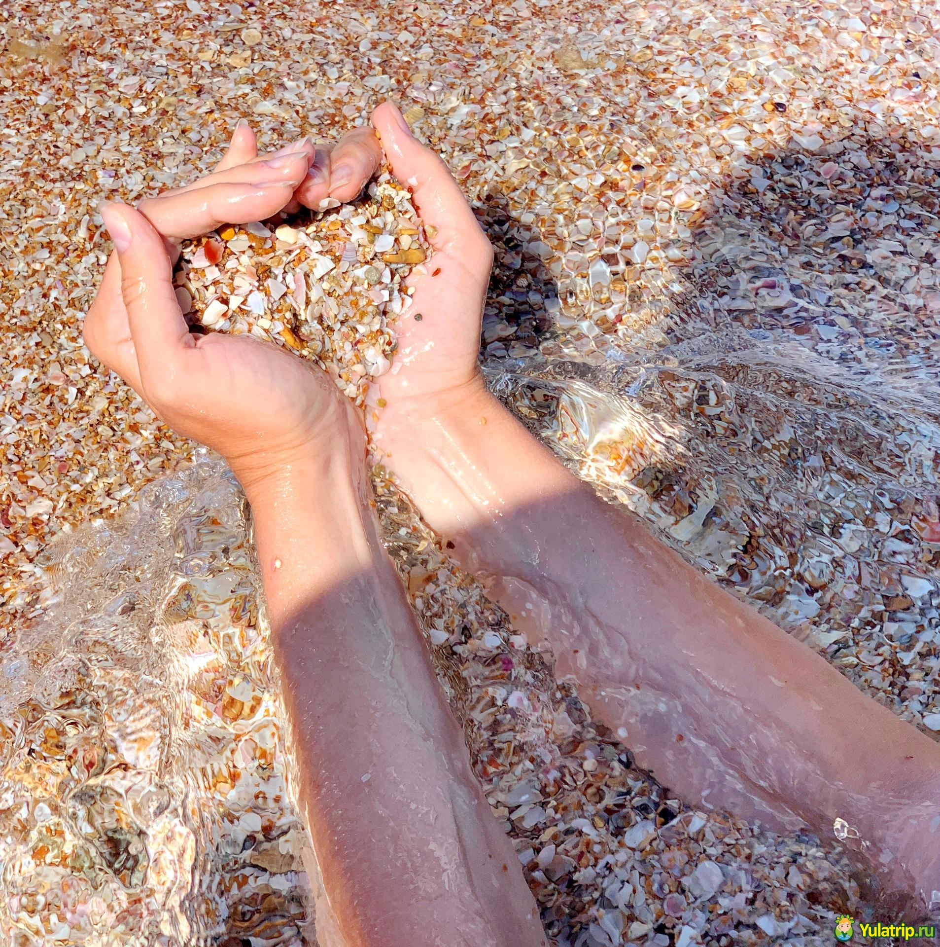 На пляже Беляус очень много маленьких ракушек, но ходить по ним совершенно не больно.