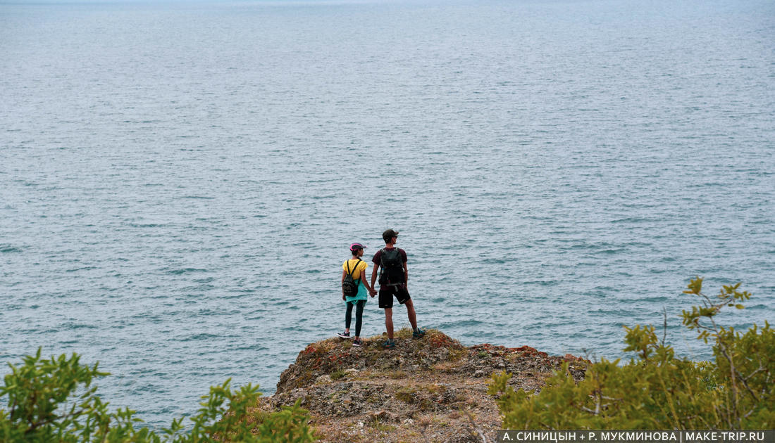 Стоим с племянницей на мысе Меганом в Крыму и любуемся морем.