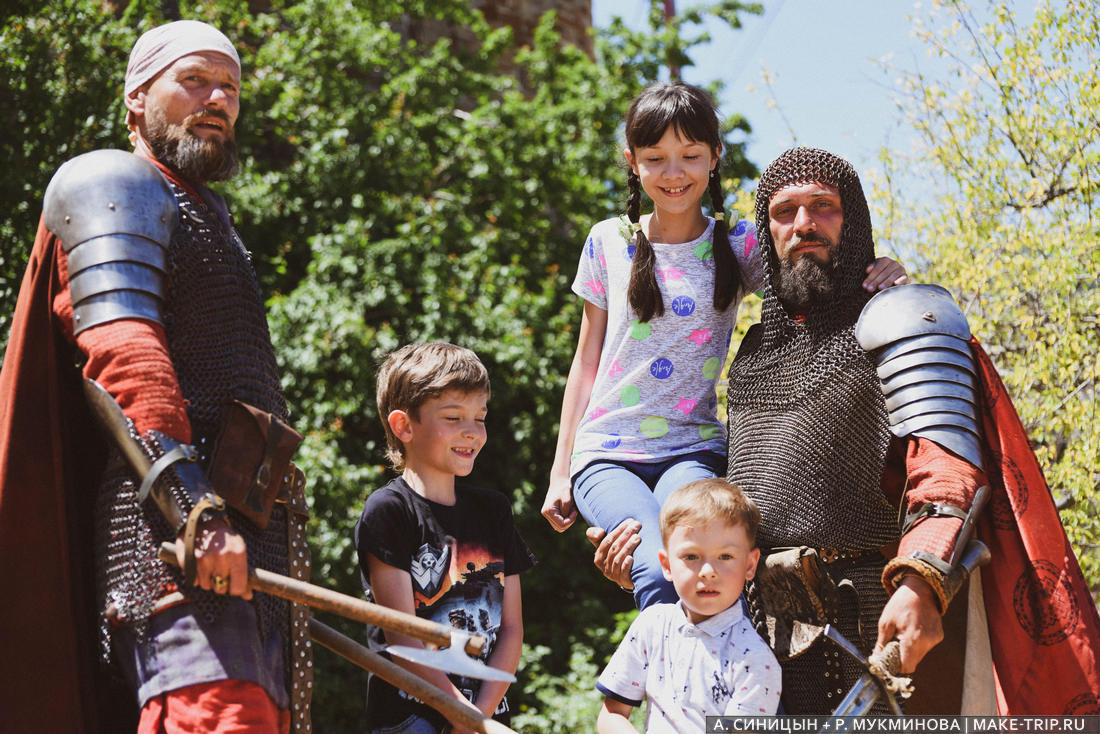 Мои племянники фотографируются с рыцарями в Судаке, Крым.