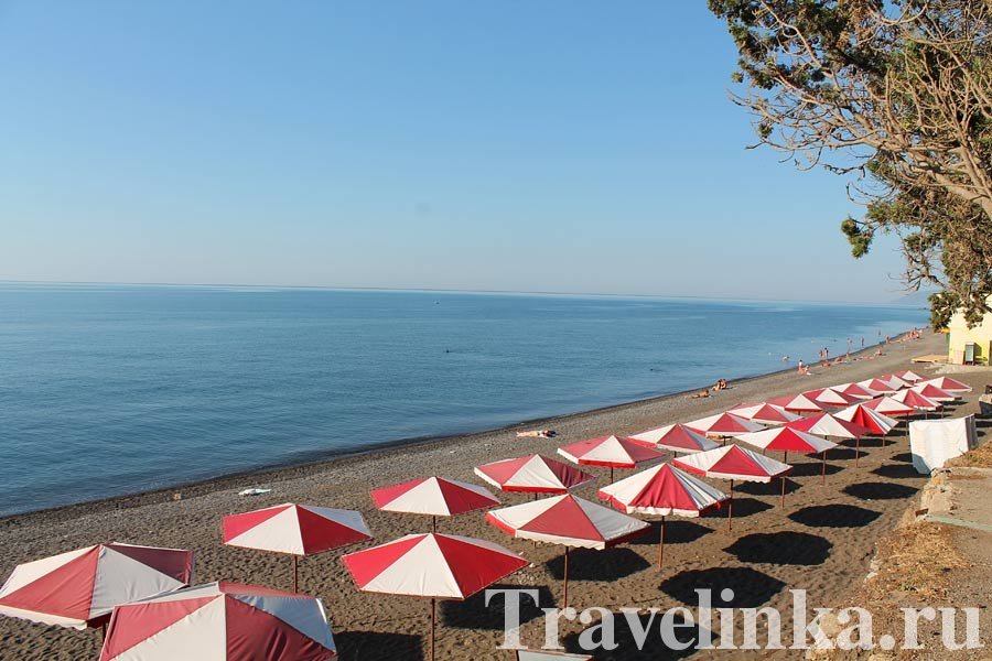 Пляжи. Тихие, протяженные (около 5 км), однако довольно узкие (до 35 м). Дело в том, что рядом нависают скалы, и разгуляться особо негде. Подъемы и спуски к пляжам здесь весьма крутые.