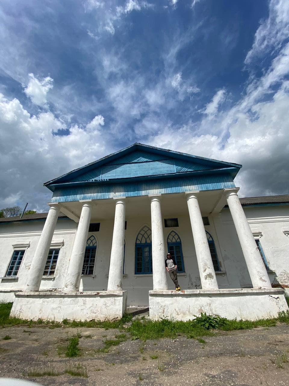 – Это каменная усадьба с колоннами, там очень интересные заостренные окна. Но внутрь, к сожалению, пробраться нельзя – она вся заколочена. В советское время усадьба принадлежала колхозу, за ней не ухаживали должным образом.