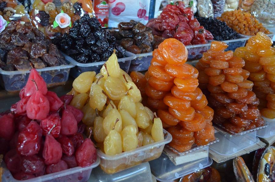 На здешних рядах огромное разнообразие мяса, рыбы, овощей и фруктов — последние пользуются особенной популярностью у туристов, привлеченных широким ассортиментом засахаренных абрикосов, персиков, чернослива, инжира и хурмы. Фруктовый (как и весь центральный) рынок давно стал одной из узнаваемых достопримечательностей Еревана, так что побывать здесь нужно обязательно. И, конечно, поторговаться: здесь это обычное дело.