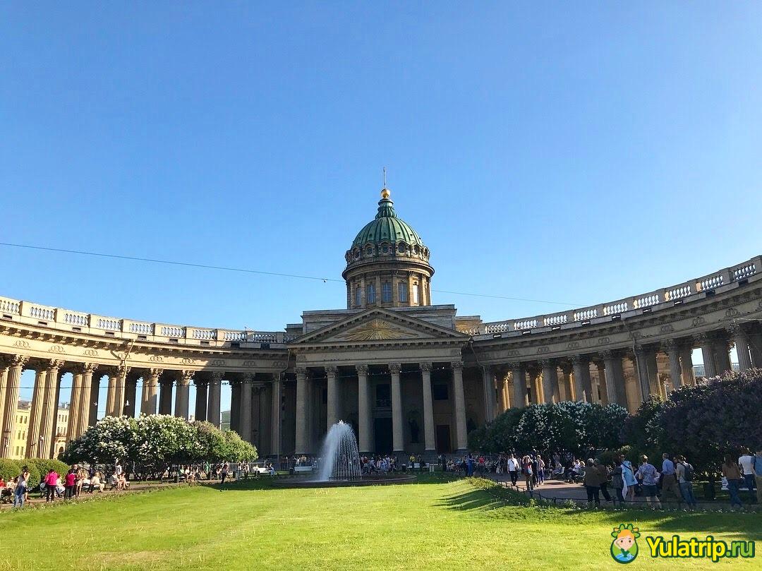 Пройти мимо Казанского собора на Невском проспекте точно не сможет ни один уважающий себя путешественник. Храм известен далеко за пределами Санкт-Петербурга. В самом соборе и в его окрестностях достойно внимания все: невероятно продуманная архитектура каменного комплекса, богатое внутренне убранство, изумительные материалы и технические решения, воплощенные в жизнь при строительстве обители. Вызывает у посетителей комплекса жгучий интерес собрание трофейных знамен времен Отечественной войны 1812 г., могила М.И. Кутузова, памятник этому выдающемуся военачальнику в дуэте с мемориалом в честь Барклая-де-Толли. Вход в религиозное заведение – бесплатный, службы идут ежедневно. После обзора потрясающего объекта можно посидеть на лавочках у фонтана в сквере, съесть мороженое или купить в киоске что-нибудь из мира фаст-фуда, посмотреть на Дом Зингера, расположенный наискосок от собора на другой стороне шумного и оживленного проспекта.