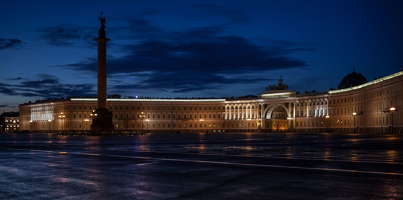 По большей части красота Дворцовой площади заключается не только в отсутствии людей, но также и подсветки задний, установленной практически везде. Она подчеркивает формы каждого из них. Загадочный, ночной Эрмитаж выглядит куда величественнее именно ночью, как и весь архитектурный ансамбль. Если же до вашего прихода недавно был дождь (это в Питере бывает довольно часто), огни, отражающиеся на мокром асфальте, будут выглядеть особенно красиво.