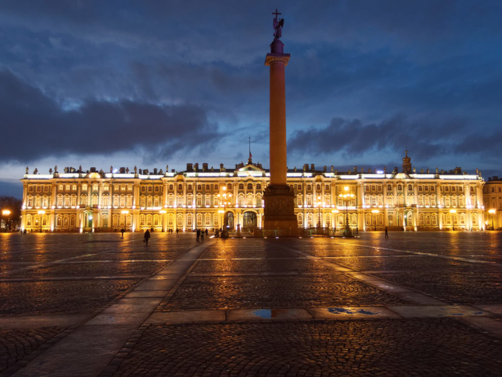 Дойдя до Дворцовой площади, турист замечает, что ночью здесь очень тихо и никто не мешает любоваться невероятным архитектурным ансамблем. Строгое здание главного штаба и бледно-зеленый фасад Зимнего Дворца удивительным образом сочетаются друг с другом. Благодаря прекрасной подсветке и отблеску огней на каменной мостовой это место может пленить вас и не отпускать до самого утра.