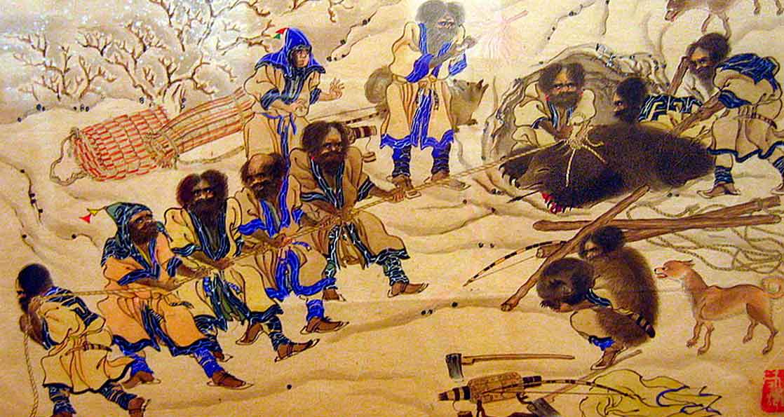 Айны на охоте. Японская гравюра. (armflot.ru)