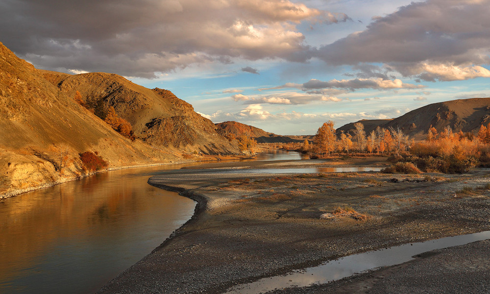 Первое, что открывается туристам, вид на реку Чаган-Узун. В зависимости от времени года она выглядит по-разному. Например, в жаркую и солнечную погоду она порадует бурными водами, поскольку наполняется за счет ледников. А вот, когда погода неблагоприятная, то это скорее ручеёк, а не река.
