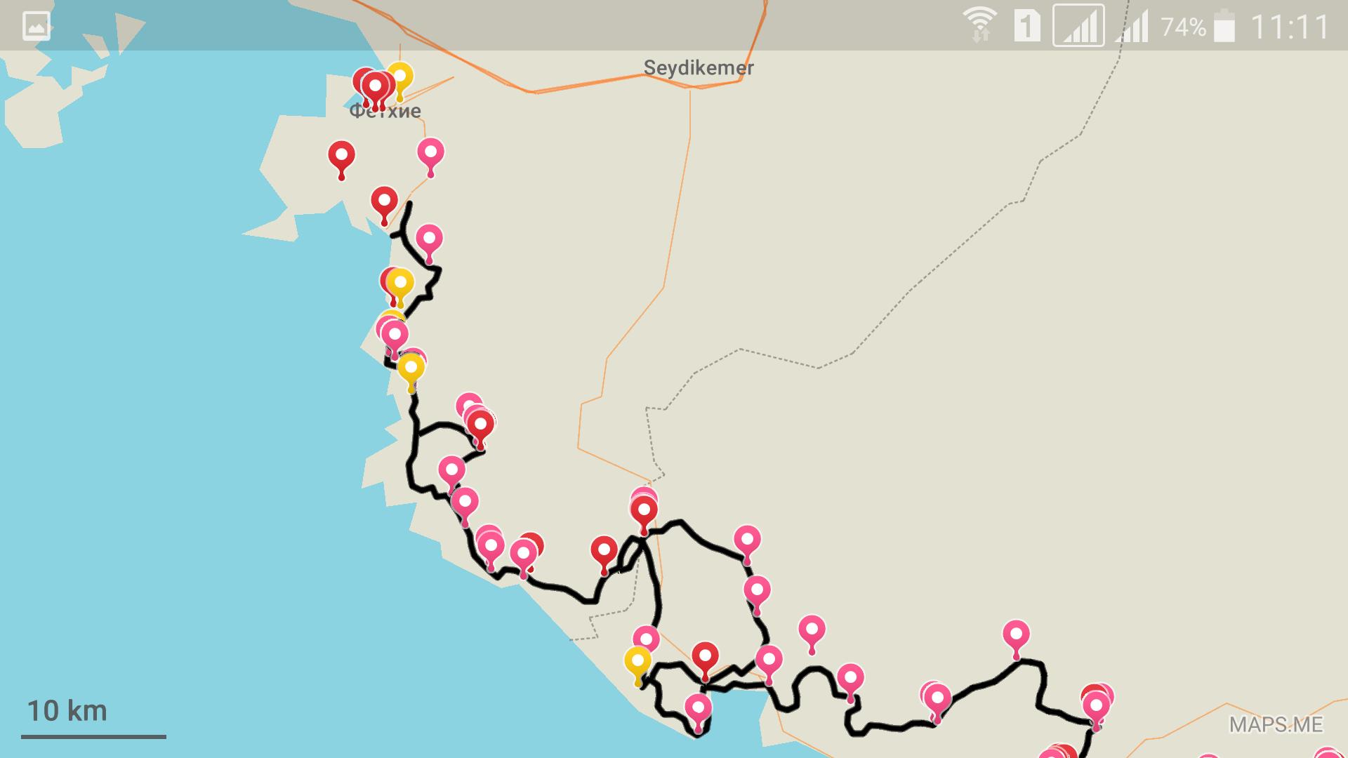Западный маршрут: Фетхие, Олюдениз, Фаралия, Алынча, Бель, Патара, Калкан, Каш, Гелидония. Это идеальный вариант для зимних месяцев — здесь теплее, большой выбор жилья (можно не ночевать в палатке), есть магазины, нет серьезных подъемов в горы и можно спуститься к красивым пляжам. При желании можно пропустить трудные или неинтересные участки, например, 40 км от Демре к Финике, проехав на маршрутке.