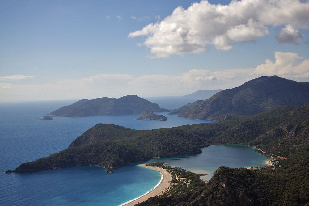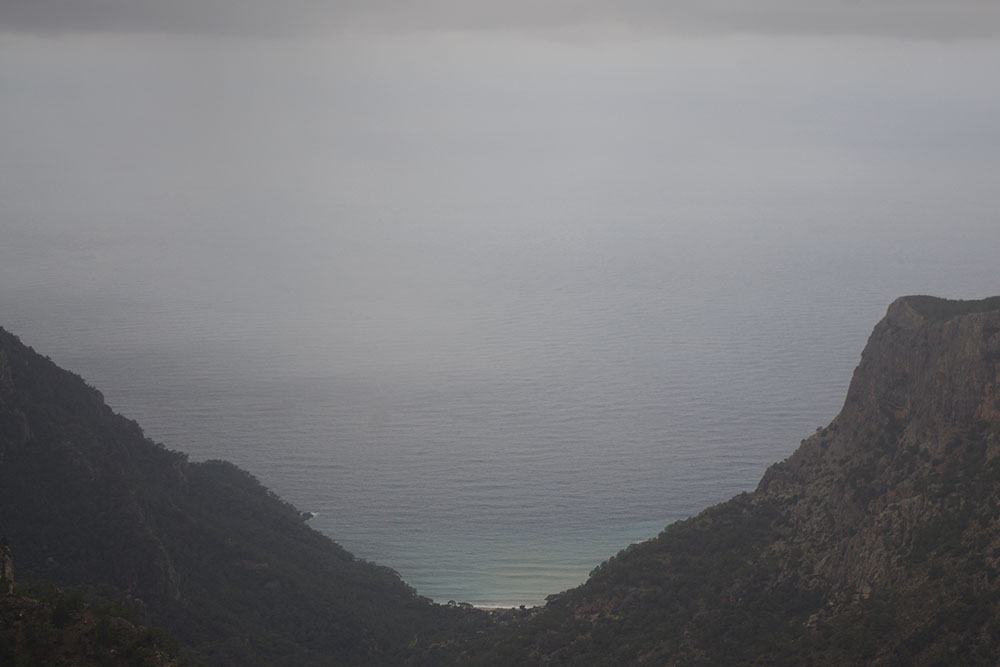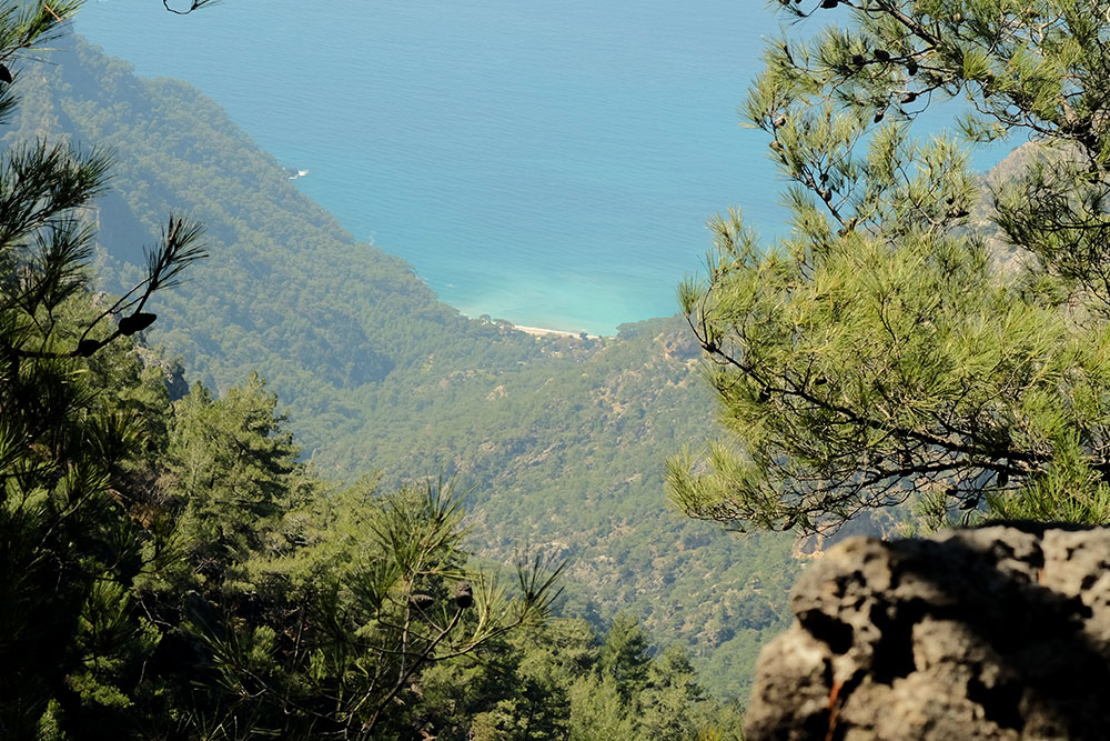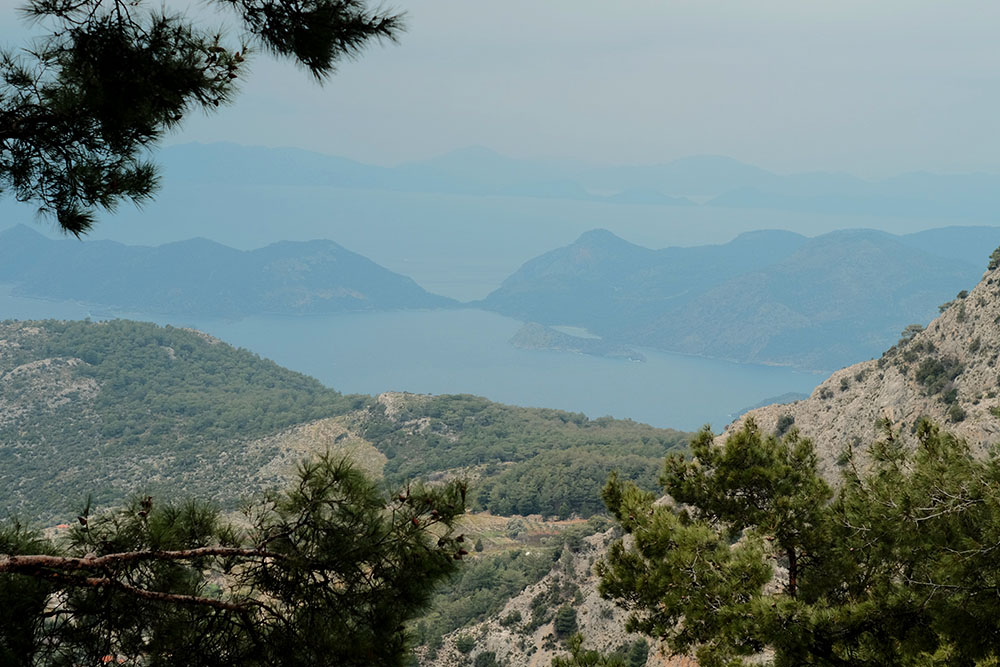 Дорога пологая, подниматься по ней легко. Плавно набирая высоту, она незаметно выводит нас все выше и выше над морем. А внизу нам отрываются потрясающие виды бухты Олюдениз, известные на весь мир.