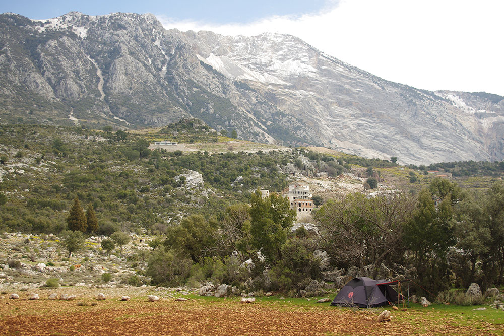 Ночью прошел дождь. Утром мы обнаружили, что в нашем тенте собралась дождевая вода, которой достаточно для приготовления завтрака. Ликийская тропа очень гостеприимна и заботлива, спасибо ей.