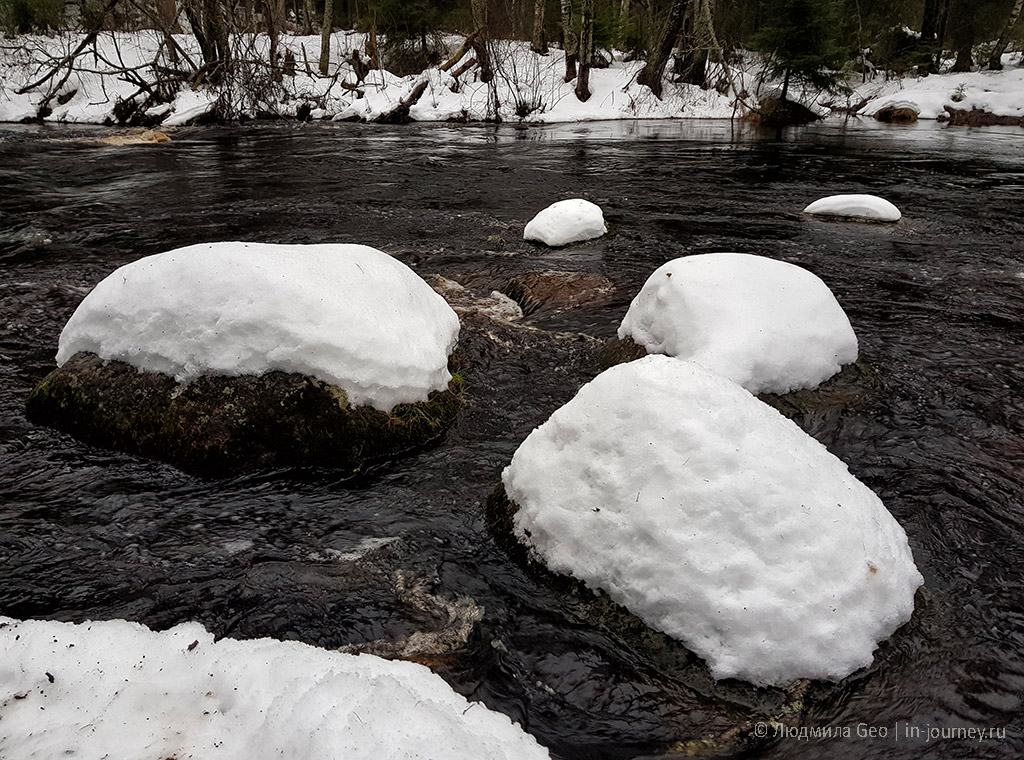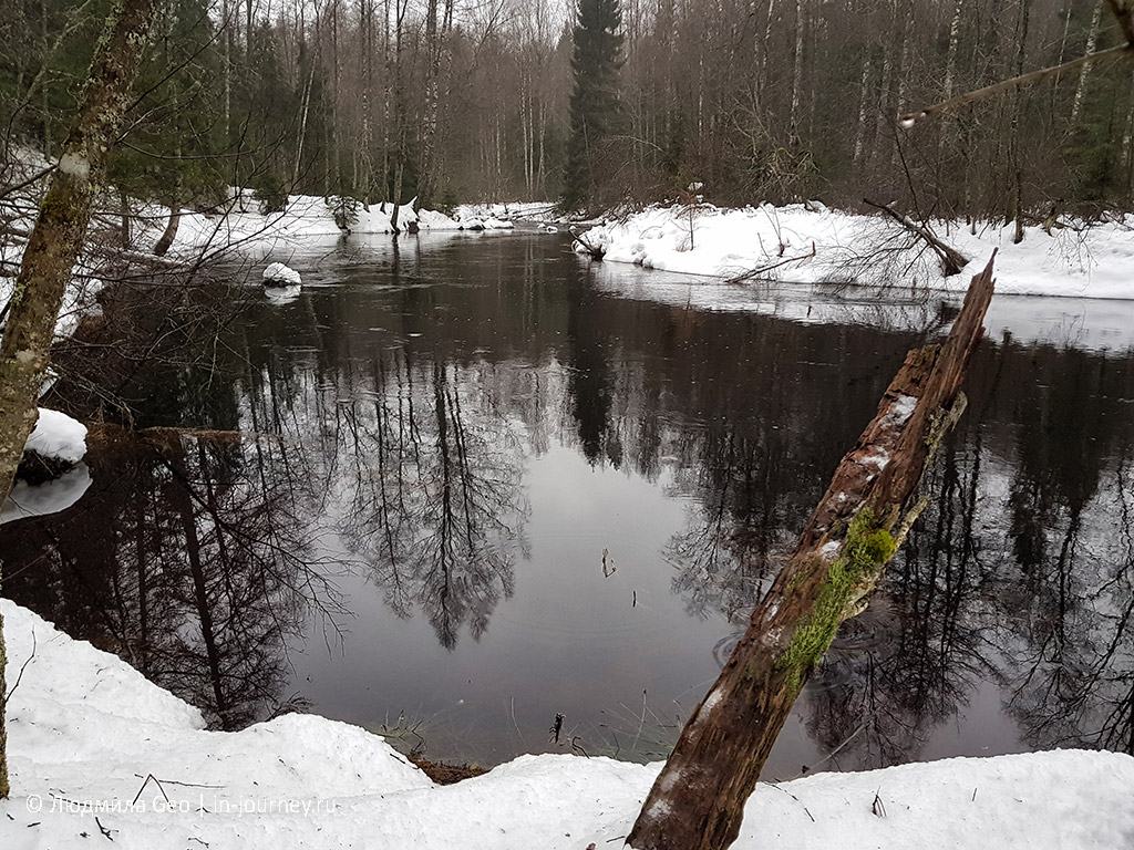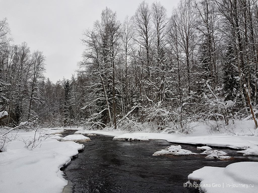Интенсивное течение не дает речке замерзнуть до конца. Тем интереснее выглядят окрестности.