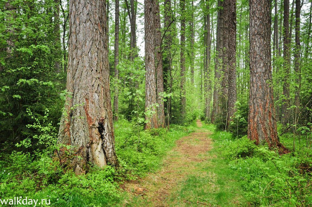 Вглубь леса ведет ровная удобная пешеходная дорожка, но по обе ее стороны расположены то глубокие овраги и ложбины, то возвышенности, покрытые густой растительностью.