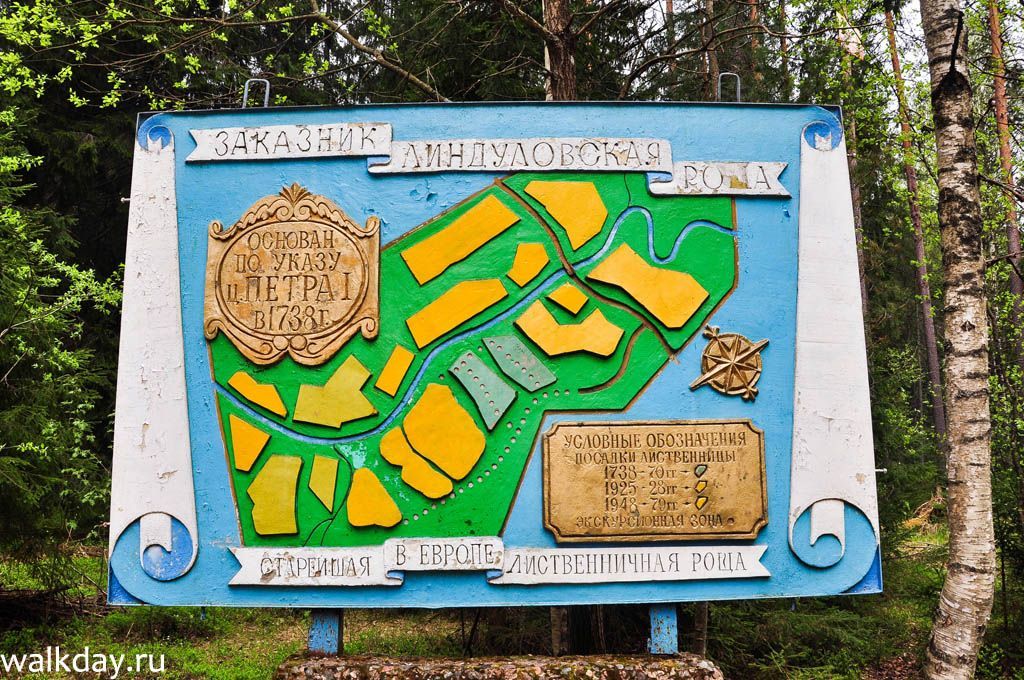 В Линдуловской роще проложен живописный экологический маршрут. Он занимает малую часть заказника, но, при таких масштабах, все равно достаточно длинный.