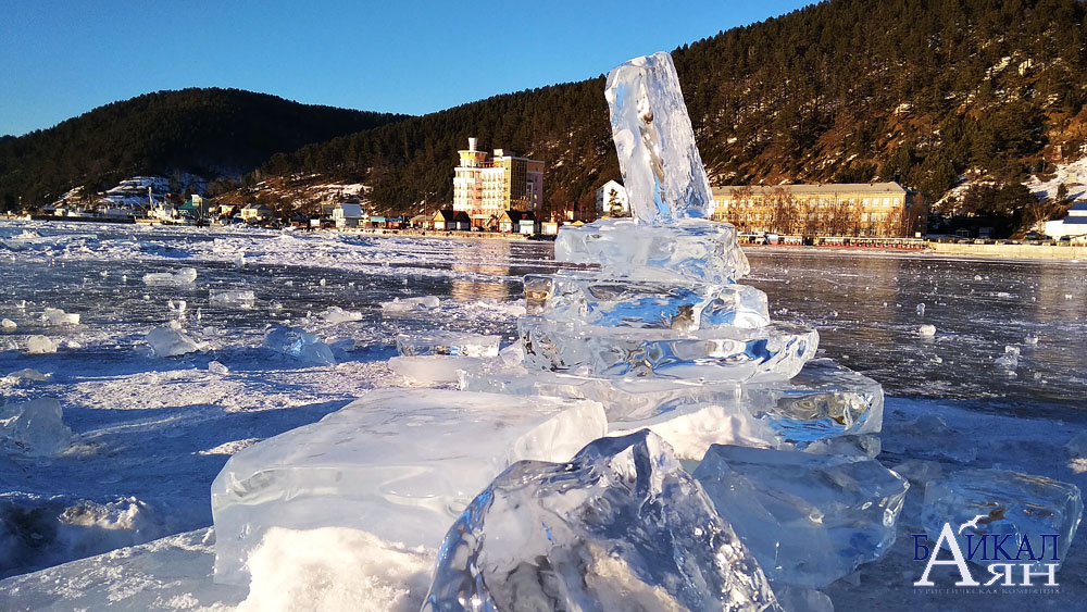 В феврале вдоль берегов Листвянки формируются торосы — нагромождение обломков льда. Образуются они вследствие потепления, когда температурные щели перестают выполнять свою функцию.