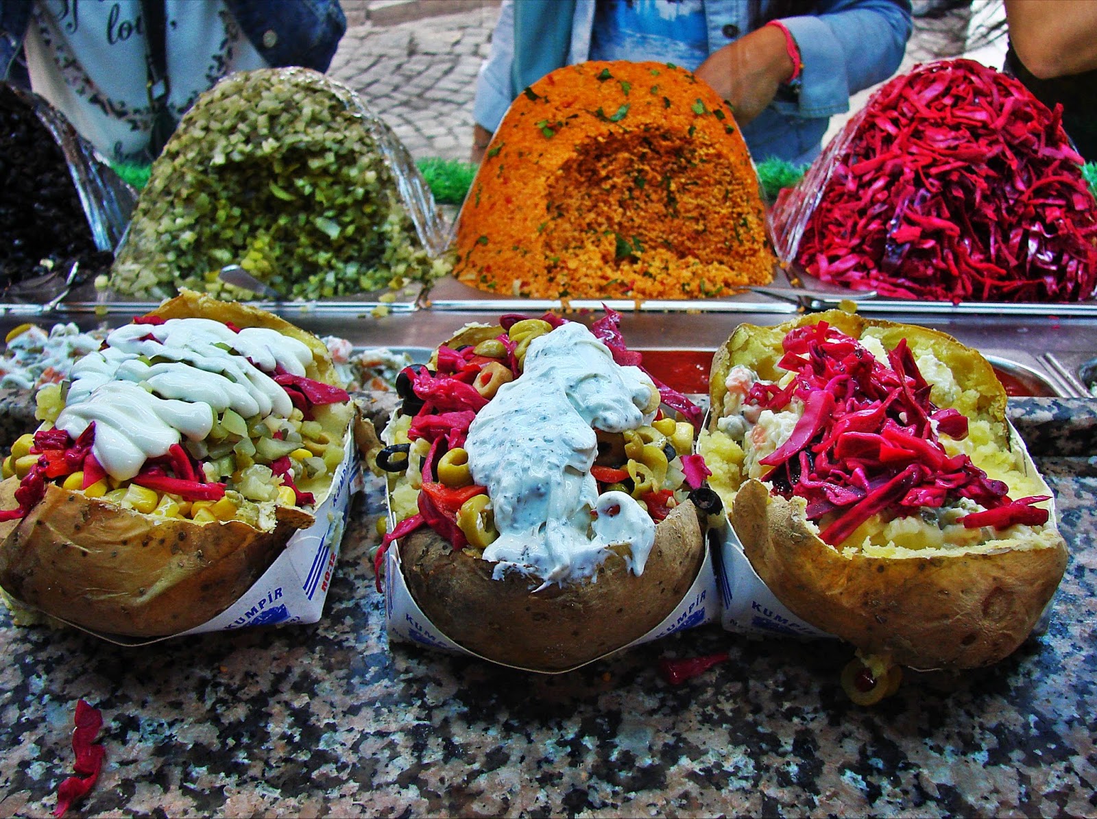 Уличная еда Стамбула – не обязательно пищевые эксперименты. Вполне можно найти в местных стрит-фудах привычную еду для среднестатистического европейца. Например, кумпир – печеный картофель с разными начинками.
