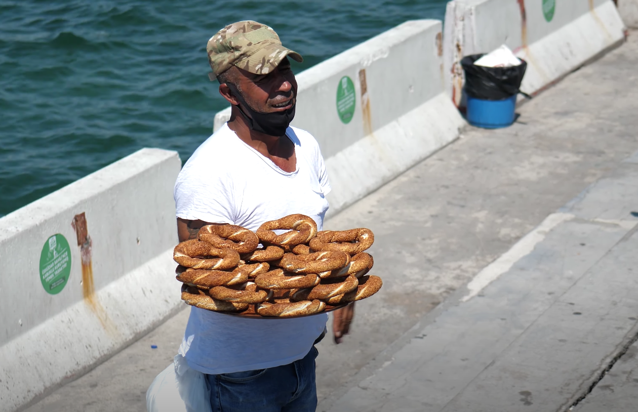 Бублик с кунжутом – традиционная турецкая выпечка, которую продают буквально на каждом углу. А на набережной симитчи (продавцы бубликов) стоят буквально друг за другом, не заметить их сложно.