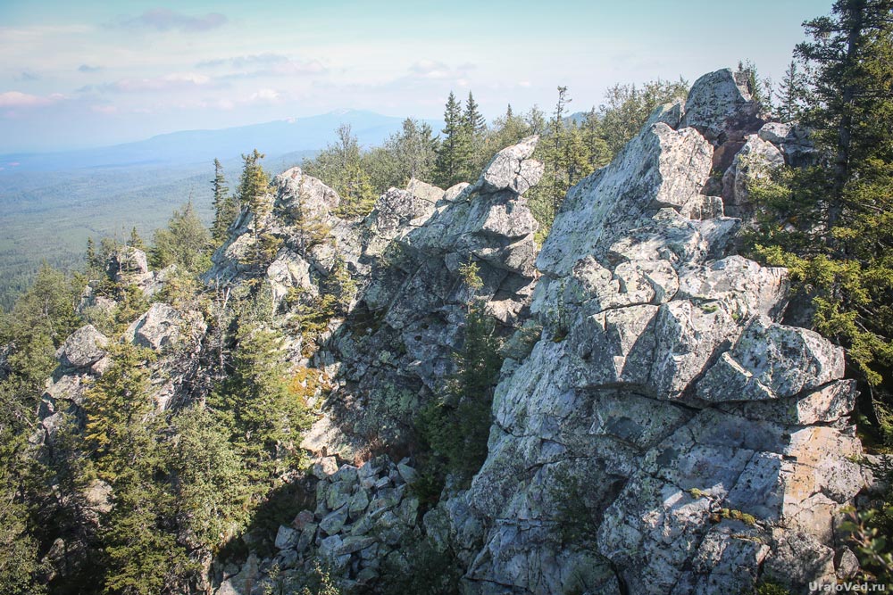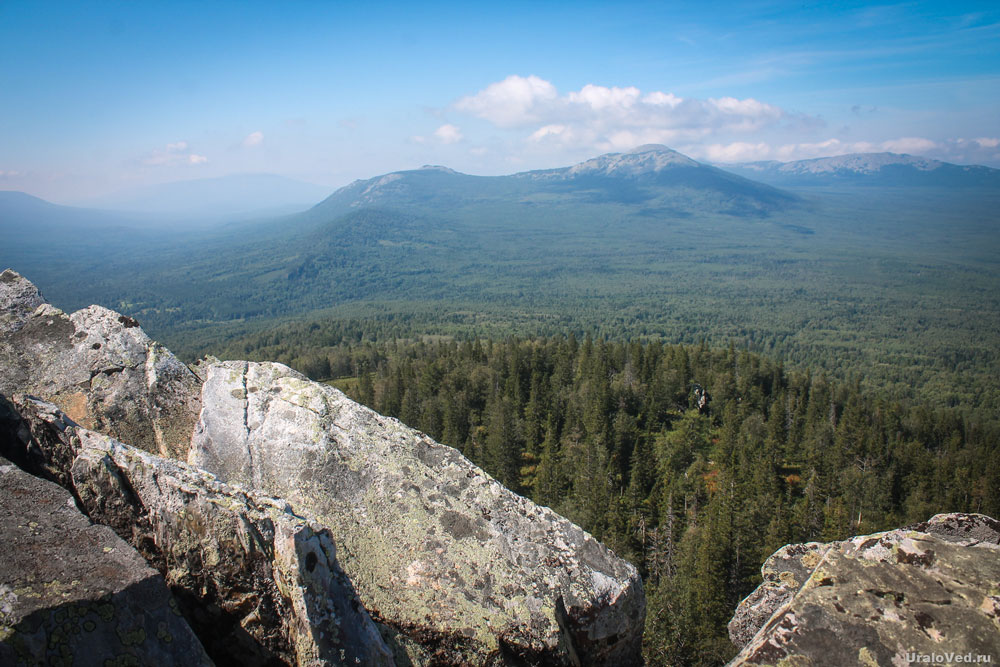Близ вершины начинаются каменные россыпи – курумники. По пути встречается малина, на горе растёт брусника. Наверху много скал. В отличие от соседнего Нургуша, тут даже на вершине хребта растут деревья. Они мешают обзору, хотя места с хорошими панорамами на окрестности всё же можно найти. Сверху можно разглядеть хребты Нургуш, Большая Сука, Уван.