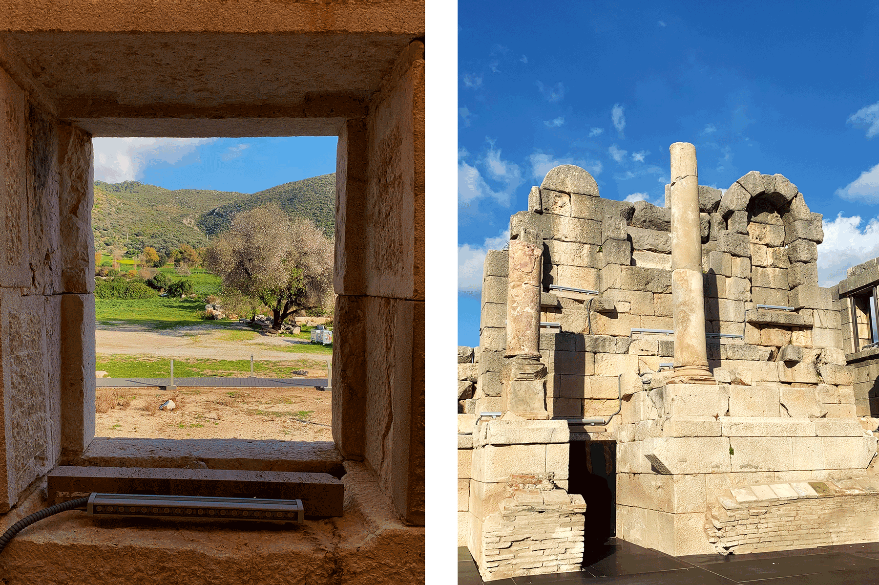 Отели в Каппадокии имеют свой характерный стиль: стены сложены из грубо обработанного камня, много арок, лесенок, выемок — архитекторы стремились слить строения с окружающими скалами. В то же время эти белокаменные многоарочные здания в вечерней подсветке смотрятся очень нарядно, словно дворцы.