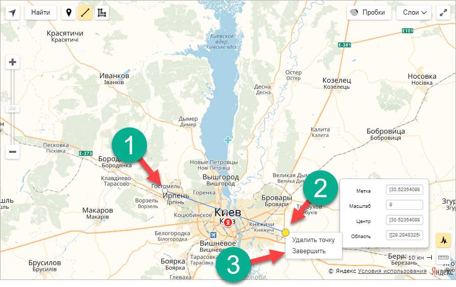 Также тут присутствует инструмент прокладки пути. Причем он позволяет получить координаты начальной и конечной точек маршрута. Давайте рассмотрим, как это работает.