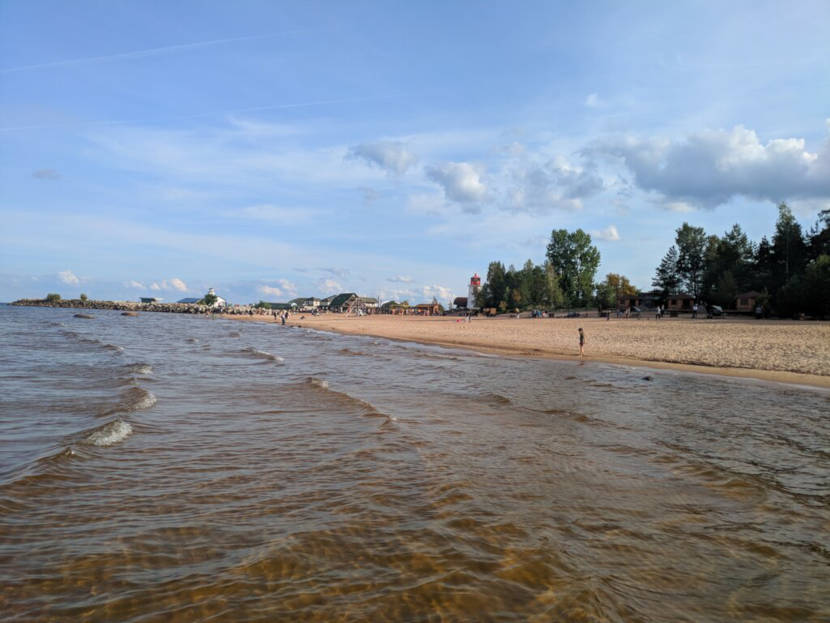 Для ориентирования на картах ищите парк 300-летия Санкт-Петербурга. В парке есть где погулять. Есть минимальная инфраструктура. Есть хороший фонтан. Есть вид на газпромовскую «кукурузину». Но главное — вы можете тут и посмотреть на Балтийское море, и потрогать его руками и ногами. А в тёплую погоду — искупаться.