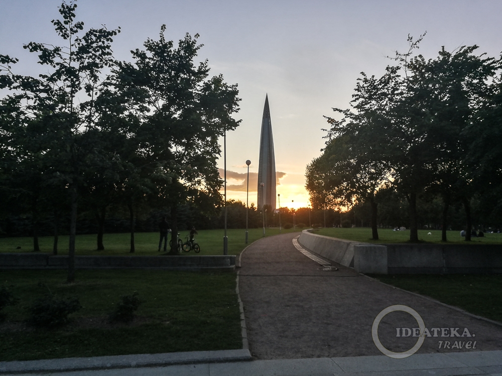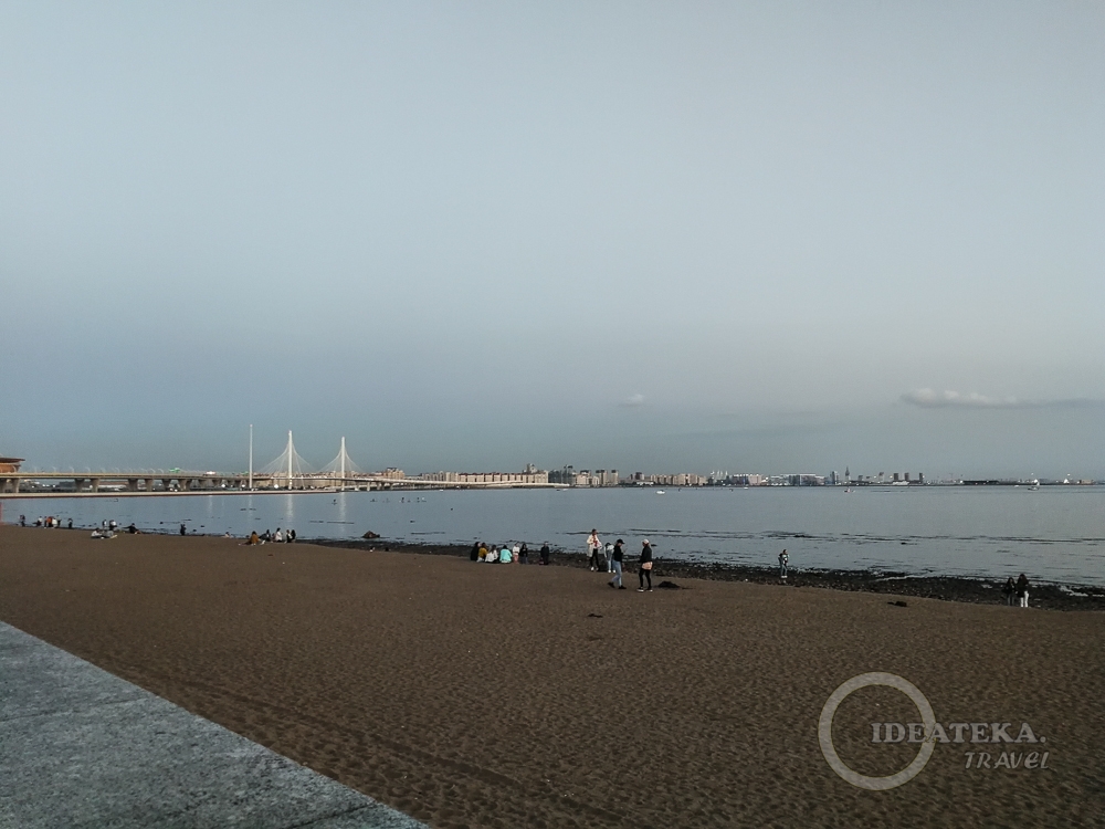 Для ориентирования на картах ищите парк 300-летия Санкт-Петербурга. В парке есть где погулять. Есть минимальная инфраструктура. Есть хороший фонтан. Есть вид на газпромовскую «кукурузину». Но главное — вы можете тут и посмотреть на Балтийское море, и потрогать его руками и ногами. А в тёплую погоду — искупаться.