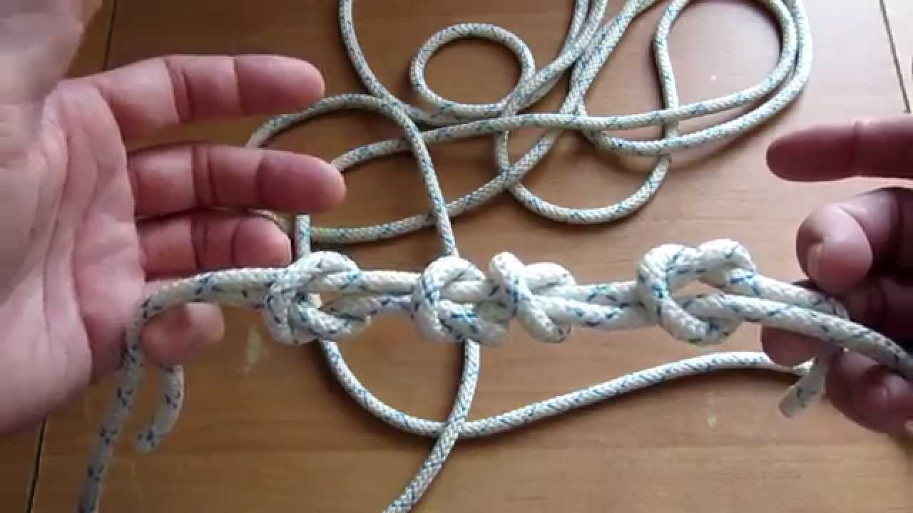 - Взять веревку. Прочность плетения не зависит от ее материала или диаметра.