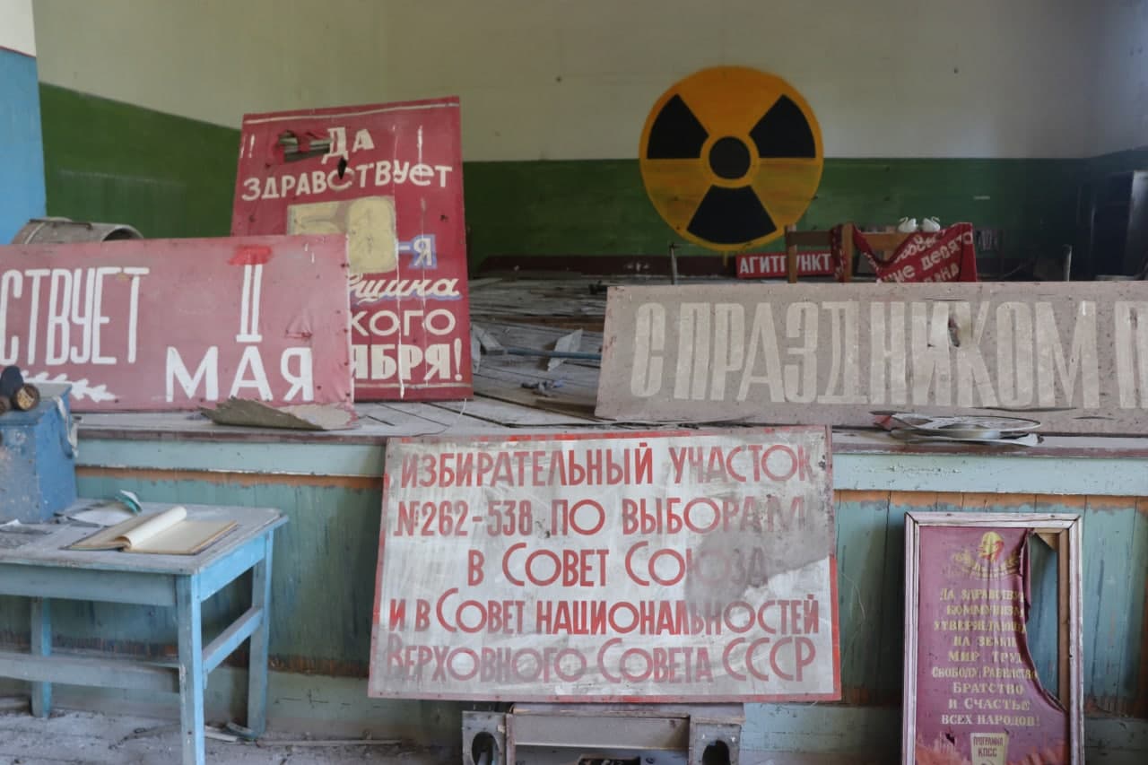 Перед входом в зону отчуждения есть маленький музей, и в нем большая и подробная карта этой территории. Там отмечены все районы, видны заброшенные здания: школы, ветеринарная клиника, заводы.