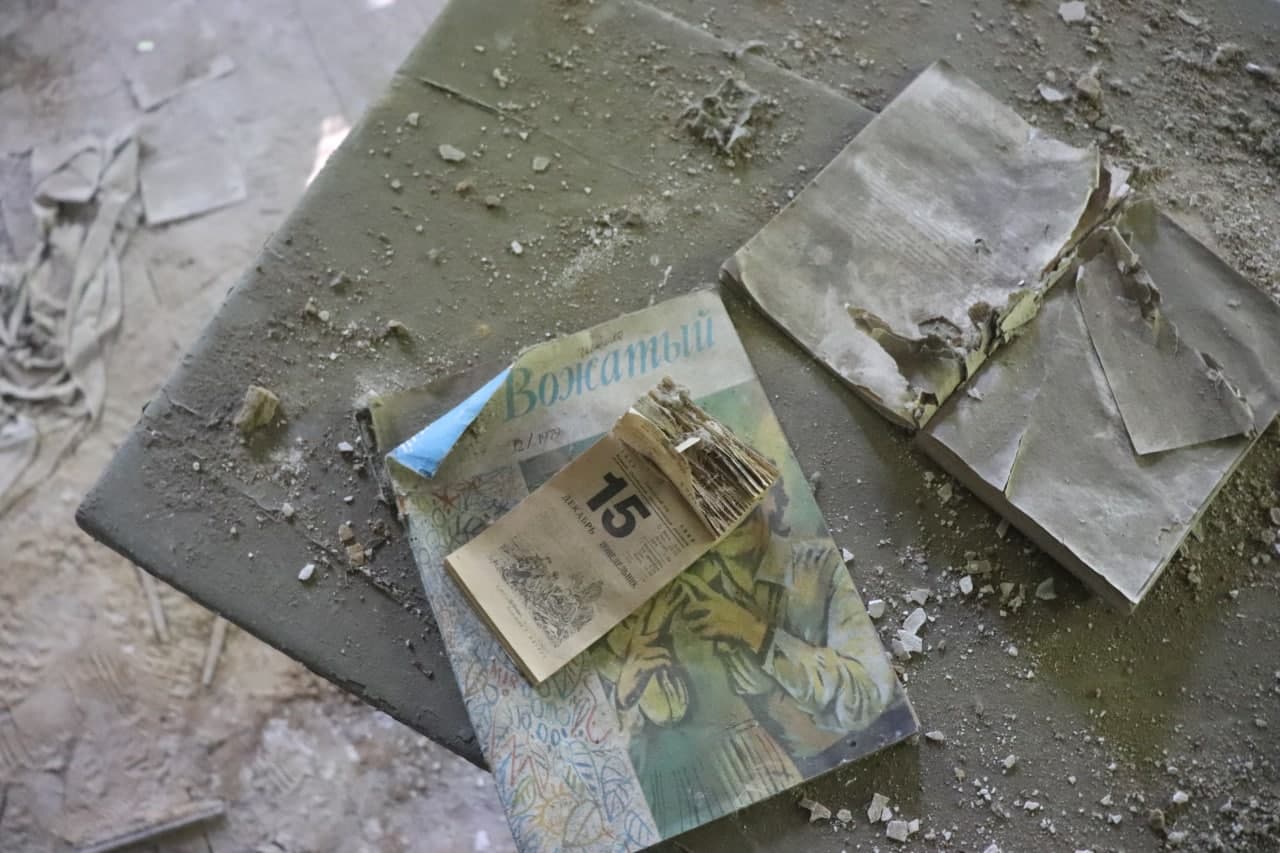 «А вот школьные тетрадки в Припяти самые настоящие, последние записи в них датируются двадцатыми числами апреля, во многих дети пишут о своих планах на лето… По-моему, это намного более трогательно, чем глупые постановочные фото с куклами и противогазами», — рассказывает Максим.