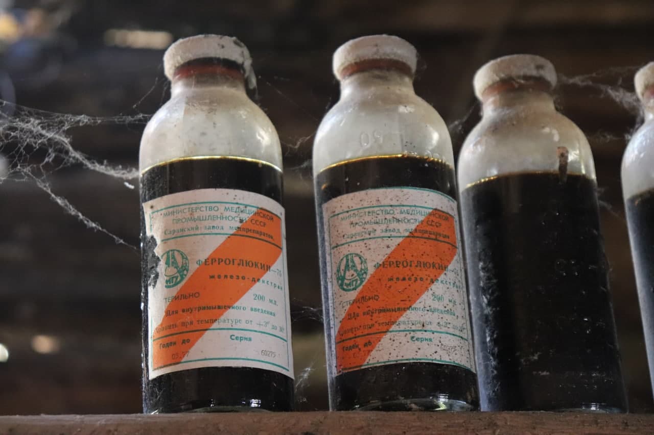 Еще мы заходили в ветеринарную клинику – она довольно сильно впечатлила. Там до сих пор стоят нетронутые препараты, банки со смесями, а все вокруг в разрушенном состоянии.