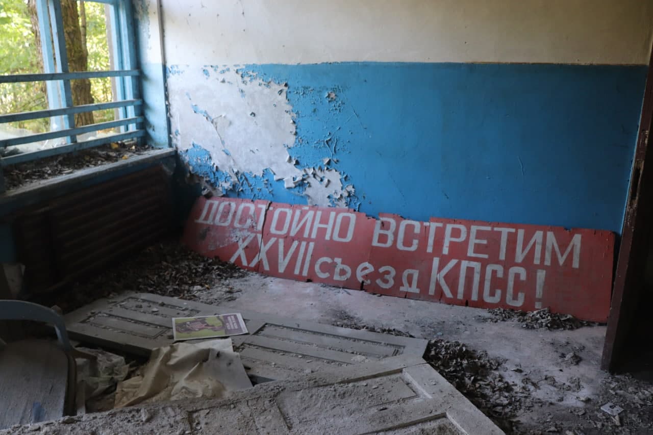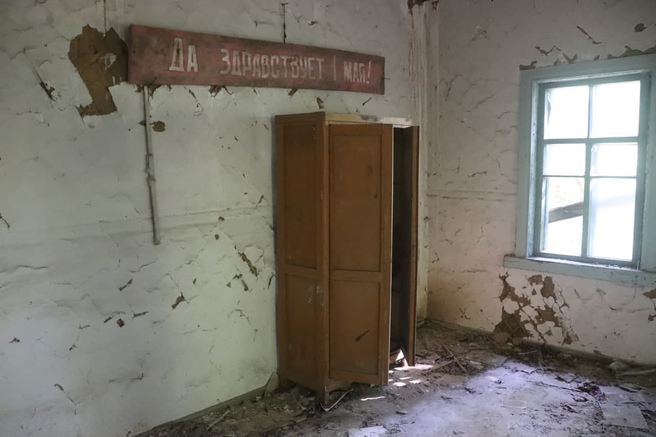 Была еще одна школа, но поменьше – она сельская и внешне она выглядела как просто хата. А как только заходишь, там сразу лозунг: «1 мая – День труда!». Авария же случилась 26 апреля, а 1 мая многие выходили на демонстрации. На стенах висело очень много черно-белых портретов – я, правда, не поняла, то ли это советские деятели, которых я не знаю, то ли фотографии сотрудников школы.
