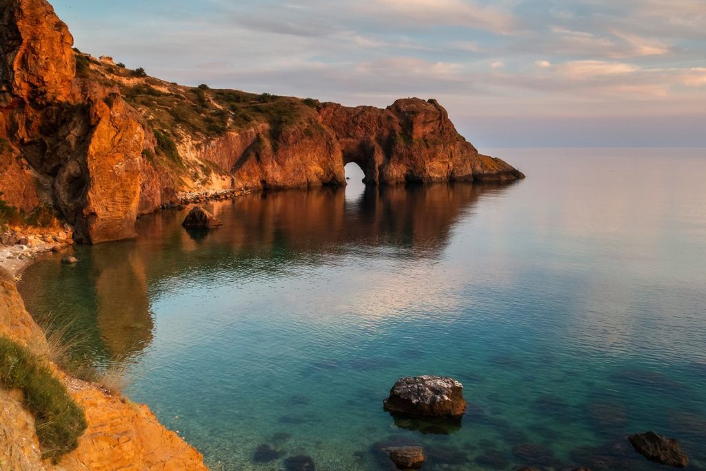 «Каравелла» («Луч») позволяет увидеть прекрасный сквозной грот с другой стороны. Любители экстрима проплывают под огромной каменной аркой с одного пляжа на другой. Это столь же дикий пляж, как и соседний «Царский».