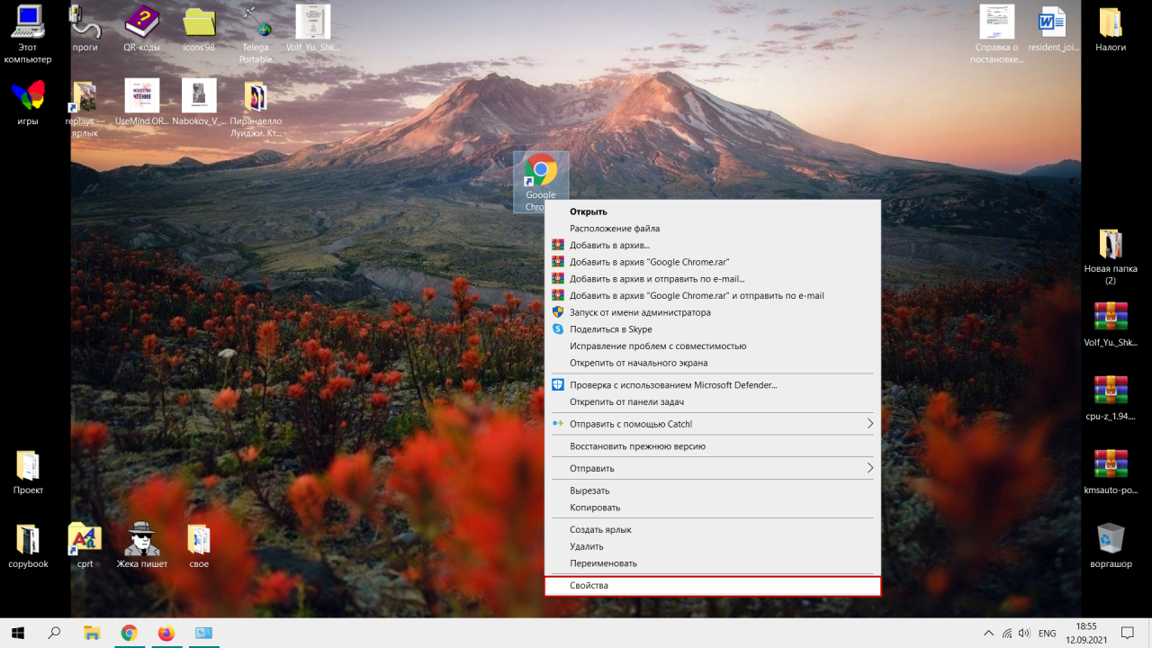 Для завершения создаем ярлык браузера на рабочем столе и кликаем в контекстном меню на «Свойства».