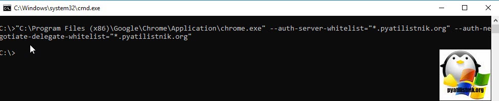 «C:\Program Files (x86)\Google\Chrome\Application\chrome.exe» —auth-server-whitelist=»*.pyatilistnik.org» —auth-negotiate-delegate-whitelist=»*.pyatilistnik.org»