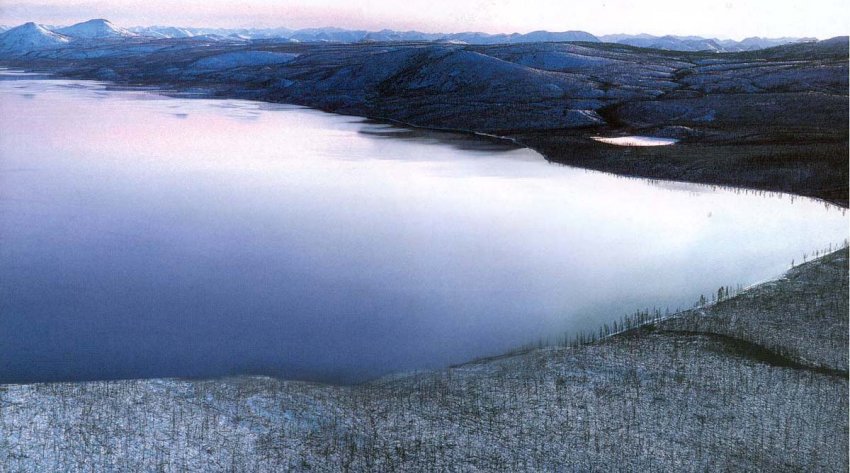 - Температура воды в глубине озера до +10 градусов, а между поверхностью воды и ледяным панцирем — -3 градуса. Вероятно, температура воды поддерживается подземными термальными источниками.
