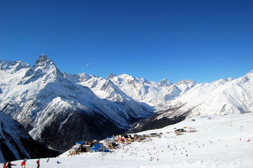 Карачаево-Черкесия (Домбай). Очень красиво и тихо. Место, куда поехать зимой покататься на лыжах недорого. Средняя дневная температура -5. Горнолыжный сезон длится с декабря месяца по май. В Домбае 25 км трасс, часть из них проходит по лесу. Зона катания на высоте от 1630 до 3168 метров. Есть хели — ски и фрирайд, доставка на вертолете Ми — 8.