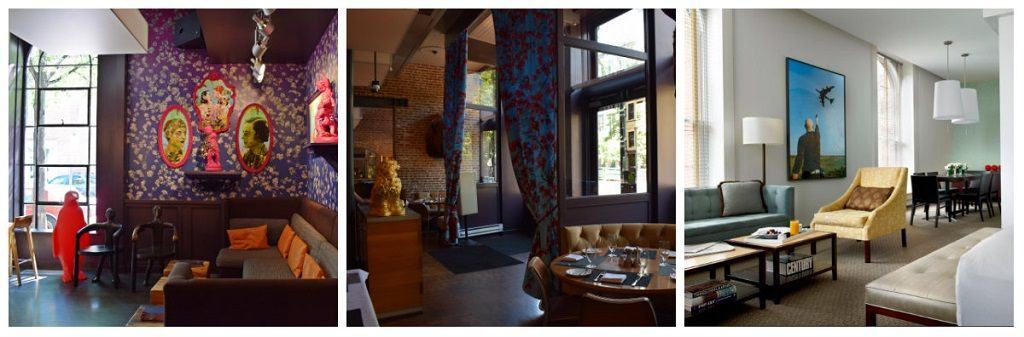 Номера музей-отеля тоже выполнены в соответствии с его художественными традициями: в каждом из них есть что-то, связанное с искусством: фотография, картина, коллаж и т.д. В ресторане 21c Museum Hotel подают блюда в стиле фьюжн, а если гостям становится одиноко, они могут попросить одного из талисманов отеля (большого красного пингвина) прийти и составить им компанию.