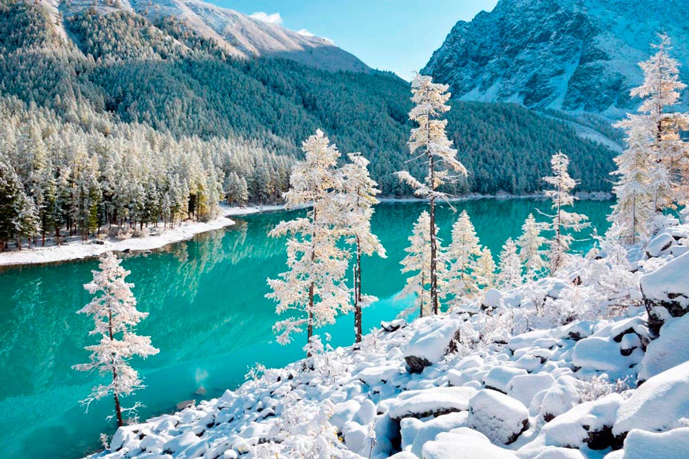 - окрестности реки Катунь, бирюзовые воды которой не замерзают даже в 30-градусные морозы;