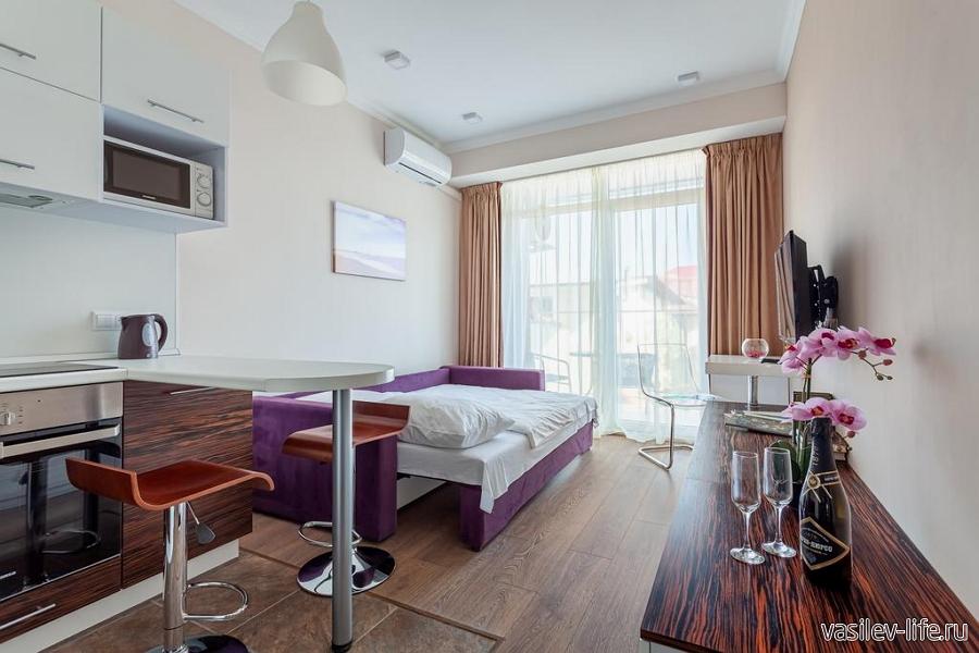 В отель предлагаются путевки без питания либо с завтраком. На момент написания статьи были хорошие скидки. Проживание в комфортабельных апартаментах с кухней и обеденной зоной. Развитая инфраструктура, доступные цены делают отель привлекательным для туристов.