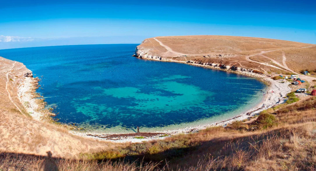 Лучший пляж Тарханкута находится в Караджинской бухте. За белый песок и бирюзовое море туристы называют это место «Баунти» или даже «Майами». Длина пляжа — 2,5 километра, пляжная инфраструктура здесь минимальна, но все же есть. Можно взять в аренду шезлонг, работает спасательный пост.