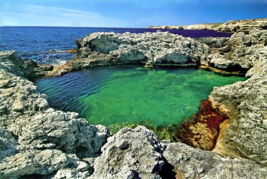 Это природный водоем, окруженный скалами. Этот интересный объект, созданный самой природой, много раз был задействован как природная декорация при съемке фильмов. «Пираты XX века», «Человек-амфибия» — мы могли видеть его в этих фильмах.