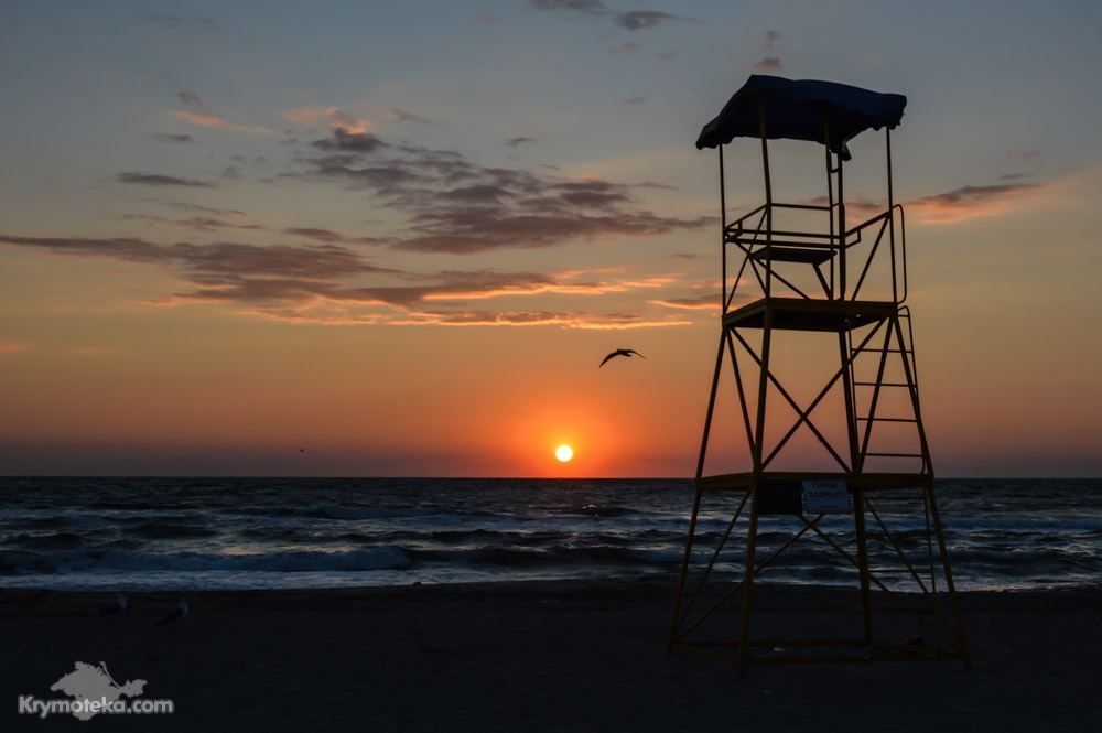 «Sunset» – пляж местности, в народе называемой «Мальдивы в Крыму”, поскольку пляж с белым песком», расположен у курорта Оленевка. Он широкий, около 200 м, и длинный – до 500 м, места хватает всем туристам. Расположение – между озером Малый Лиман и Караджинской бухтой. Здесь яркое солнце, теплое и чистое море, на берегу удобства для отдыхающих. На «Sunset» есть дайвинг-центр, где можно взять оборудование на прокат. Чтобы не ходить босиком по горячему песку разложены дощатые дорожки, есть душ и туалет, навесы от солнца, работает несколько кафе. Для защиты здоровья на пляже работают медпункт и спасательный пункт. Также на берегу много развлечений, на воде можно покататься на катамаранах, бананах.